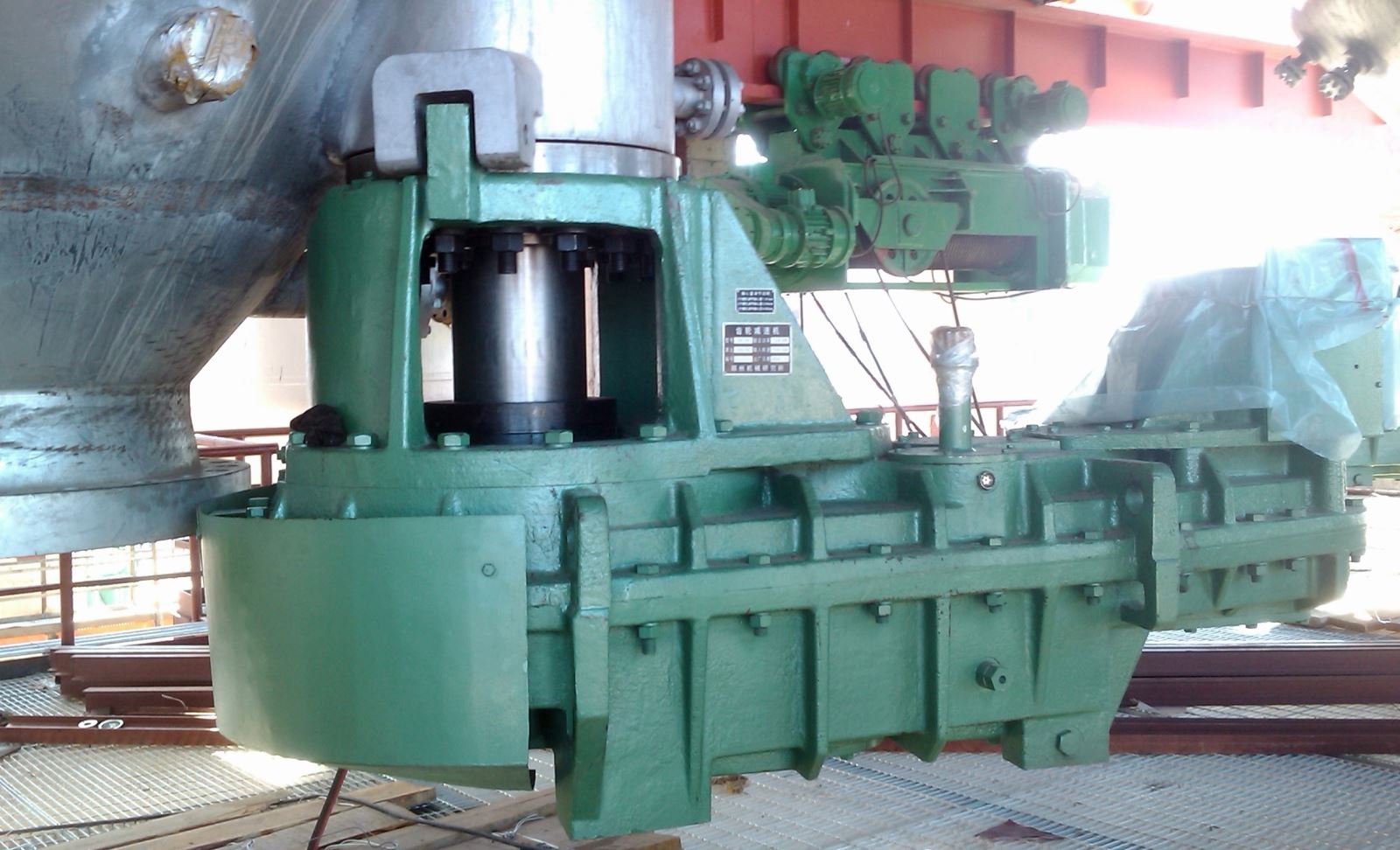 海洋鉆井平臺(tái)齒輪傳動(dòng)裝置,2004年取得了ABS和CCS船檢證書,先后為原北方鉆井公司“渤海8號(hào)”、原南方鉆井公司“南海1號(hào)”及“南海4號(hào)”等平臺(tái)開發(fā)生產(chǎn)了升降傳動(dòng)裝置和海水泵塔等,2011年為武漢船用機(jī)械有限公司配套研制生產(chǎn)了“自升式海洋鉆井平臺(tái)提升裝置”。